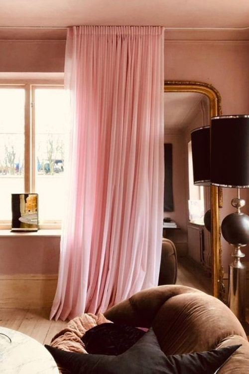 If you can’t paint, then drape. Floor-to-ceiling curtains add wow factor to any space and make it look bigger. These sheer baby pink curtains paired with chocolate furniture and warm walls is a sanctuary to come home to.